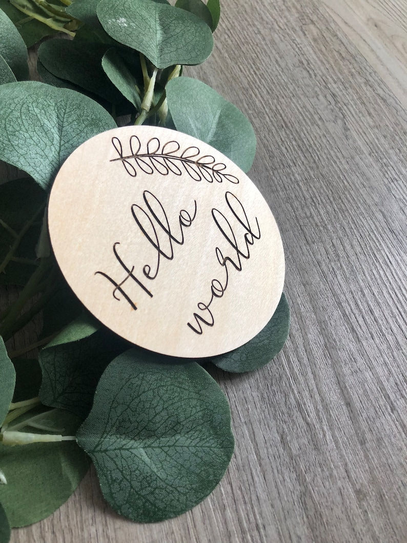 Hello World Birth Announcement Disc | Wooden Baby Announcement Sign